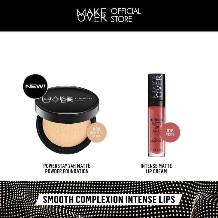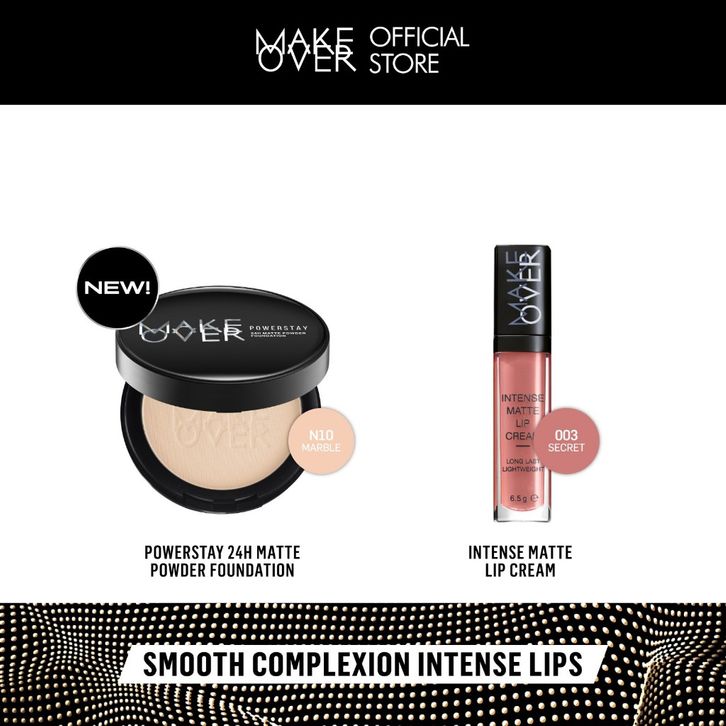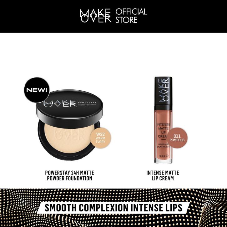 Make Over Smooth Complexion Intense Lips : 24H Powerstay Matte Powder Foundation, Intense Matte Lip Cream