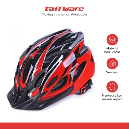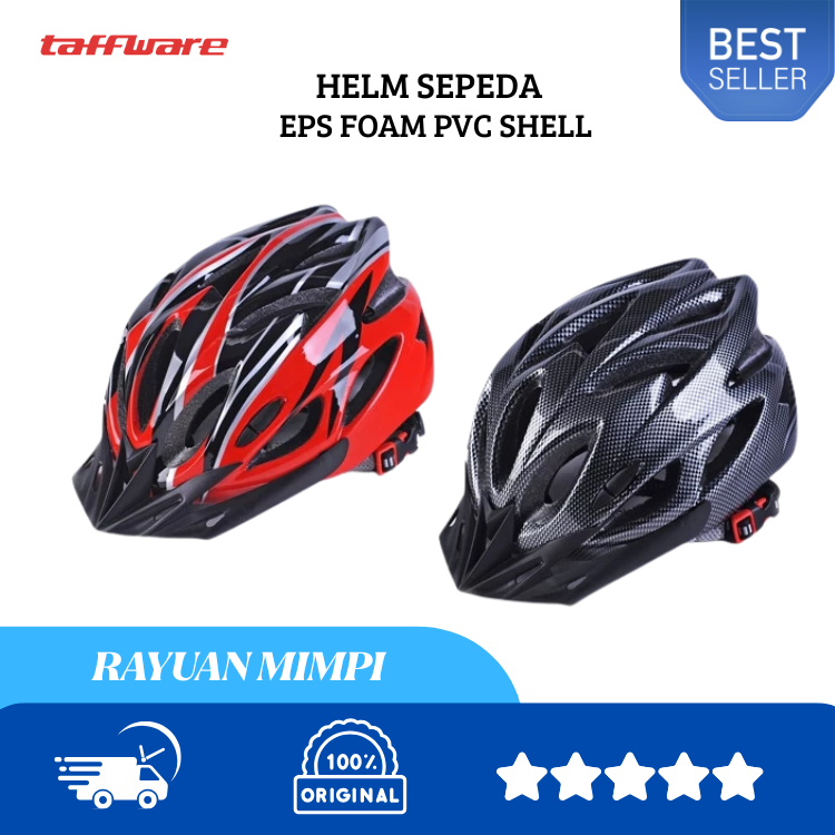 TAFFSPORT TAFFWARE HELM SEPEDA GUNUNG LISTIK LIPAT MTB BICYCLE ROAD BIKE EPS FOAM PVC SHELL DEWASA MURAH TANPA DP ORI