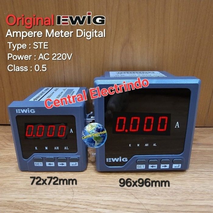 Ampere Meter Digital EWIG Type STE-A 1 Baris Indikator AC 220V Class 0.5A.