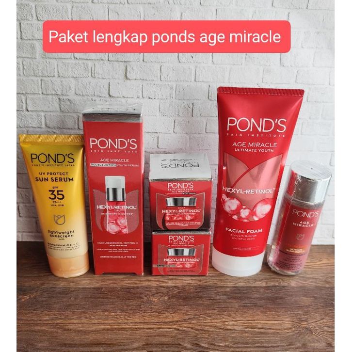 Paket Lengkap Paket ponds age miracle serum + cleanser + day/nht + retinol + sunscreen antiaging