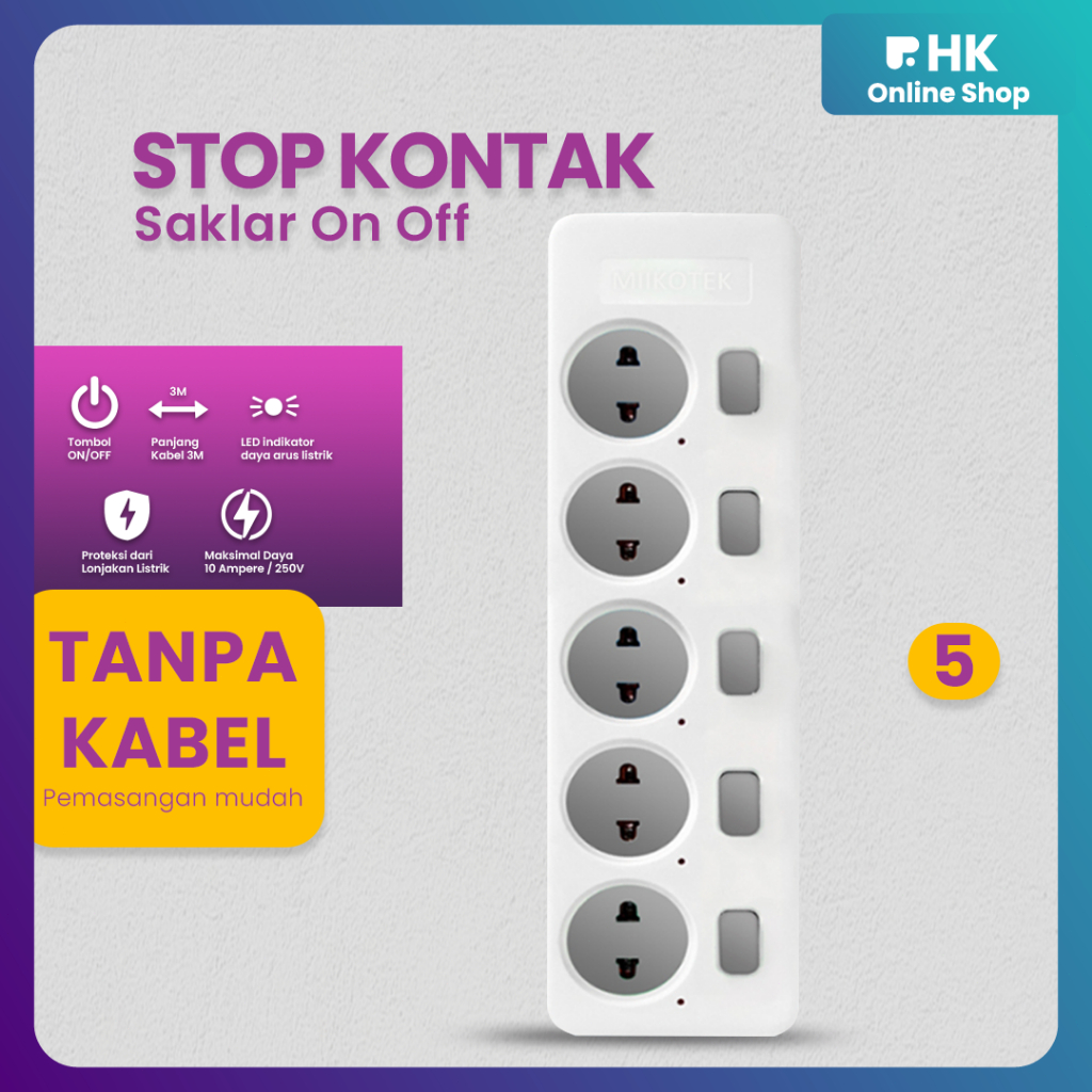 Stop Kontak Listrik Panjang 3/5/10 Meter Kabel Saklar On Off dengan 3/4/5 Lubang Ber-SNI