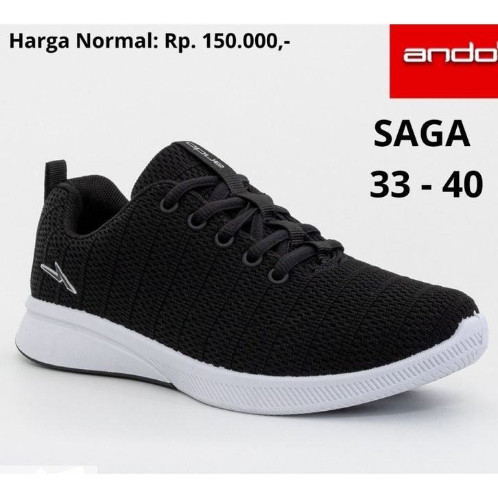 Sepatu Sekolah Model Terbaru Ando Saga Hitam Putih Laki Laki Perempuan, Sepatu Sekolah Hitam SD SMP SMA
