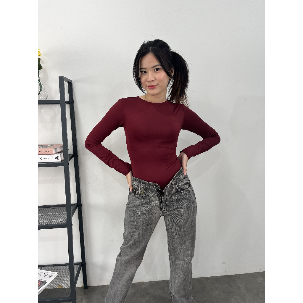 [Lolabae] APRIL Bodysuit W4n1t4 Long Sleeve | Bodysuit Basic Polos Lengan Panjang | Kaos Jersey Spandex