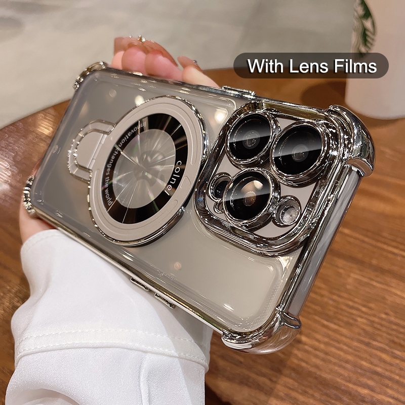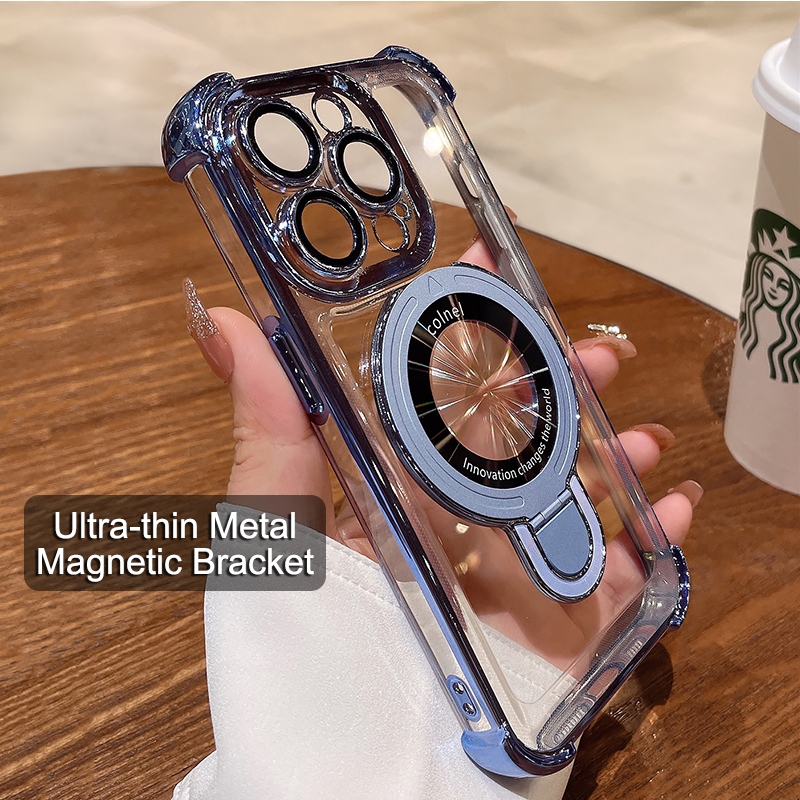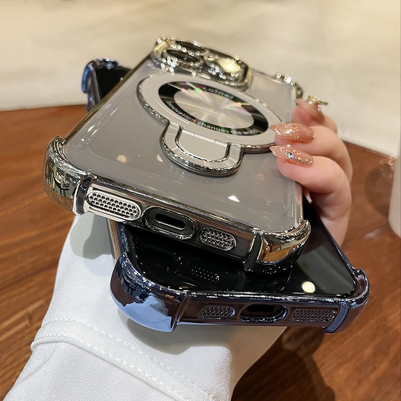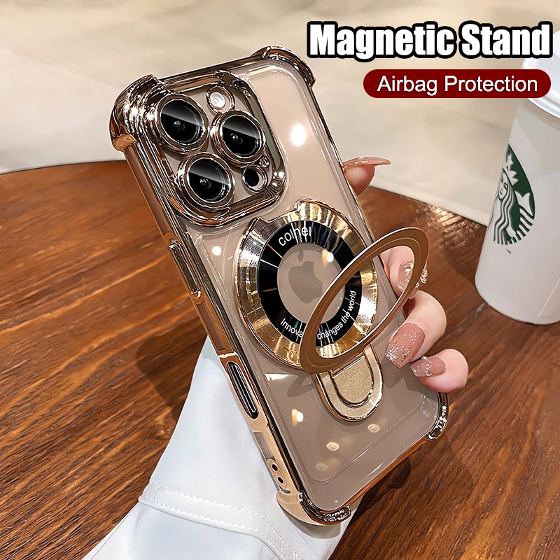 [Star] Case Magnetic Bracket Airbag Anti-Fall Electroplating Transparent Phone Case for iPhone 16 15 14 Pro Max Plus