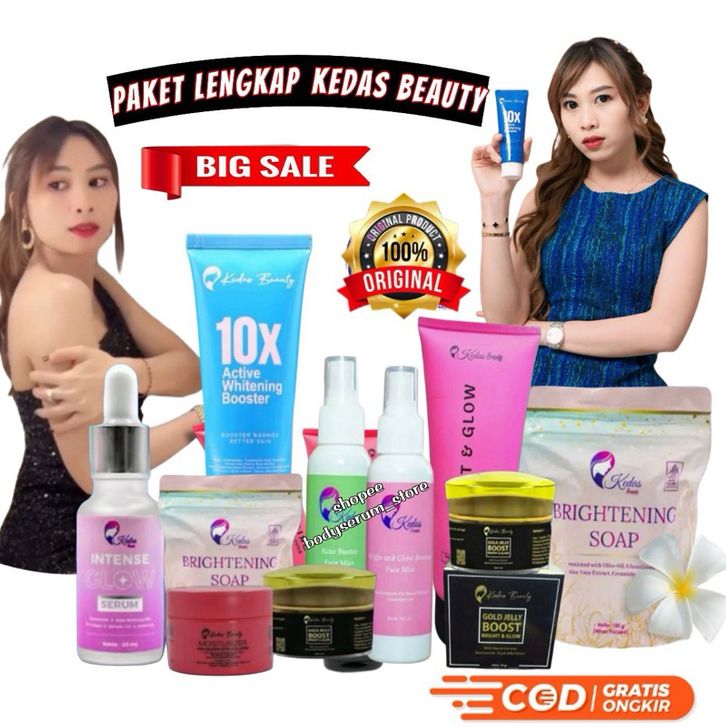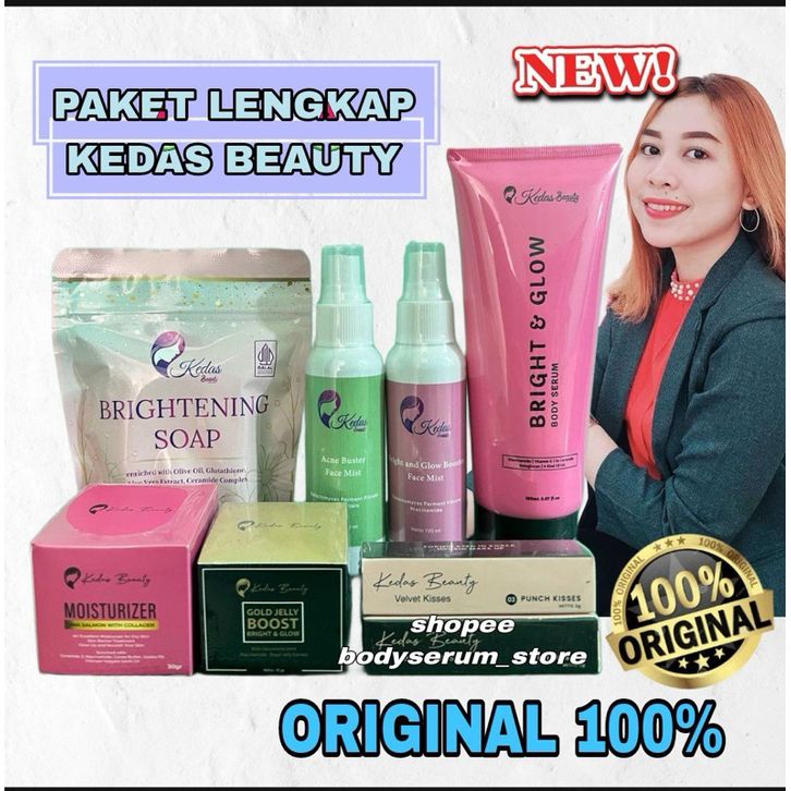 KEDAS BEAUTY Paket Lengkap Pemutih Badan Dan Wajah Sabun -Gold Jelly - Body Serum - Face Mist Ori