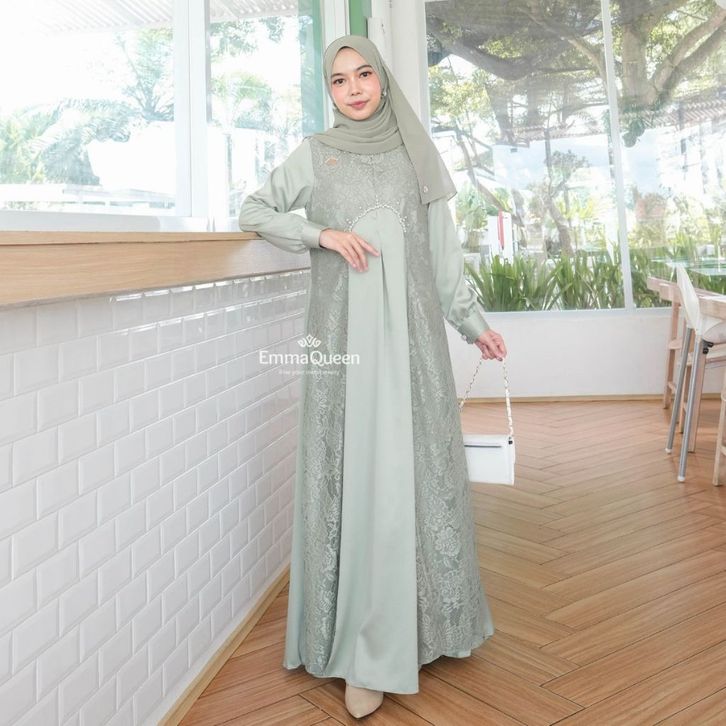 EmmaQueen - Dress Alessia Gamis Elegan Kondangan Brukat Silk Variasi Mutiara XS-XXL Busui Wudhu Friendly