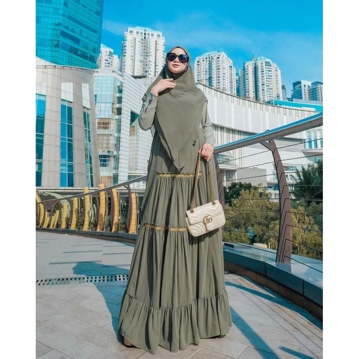 Terlaris!!!!! Baju Muslim Modern IZORA SYAR'I SET (Free Khimar) Bahan Ceruty Babydoll Full Ceruty Premium Setelan