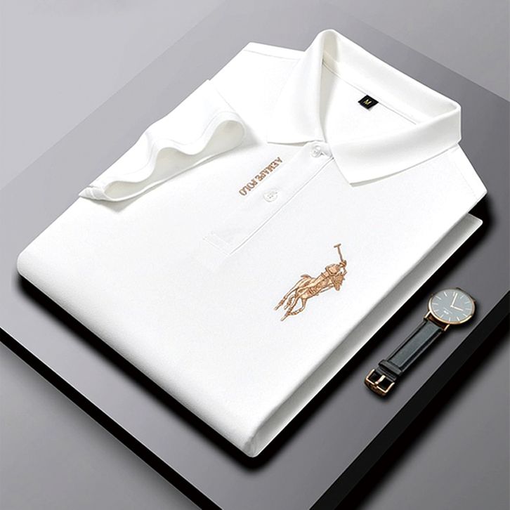 Polo shirt pria Khaki lengan pendek dewasa cowok Korean style bordir stretch kemeja kerah stand premium kaos