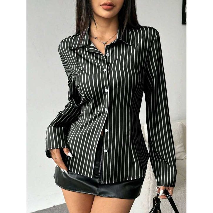 AMOURA - Slim Fitted Shirt - Kemeja Kerja Wanita - Bahan Katun Semi Wool
