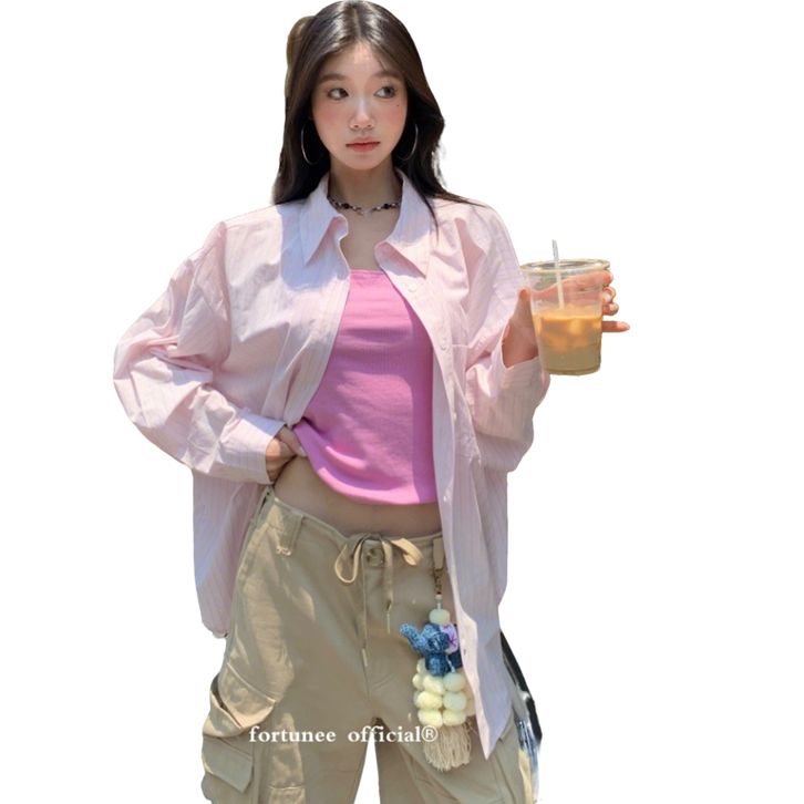 LISA Kemeja Fitted Fitted Shirt Kemeja Kerja wanita Kemeja Lengan Panjang kemeja katun wanita merah muda Stripe