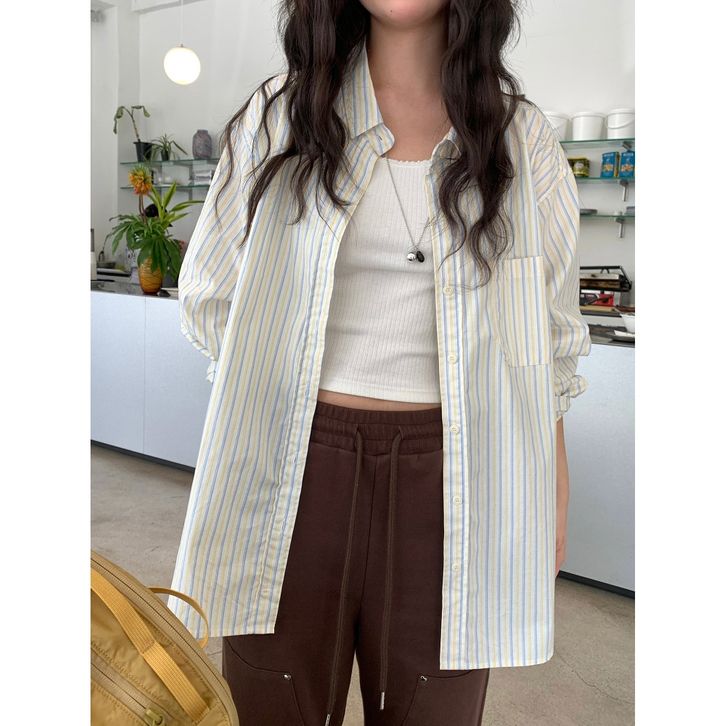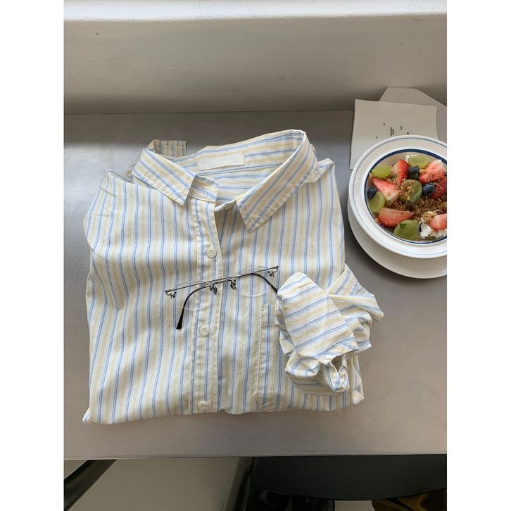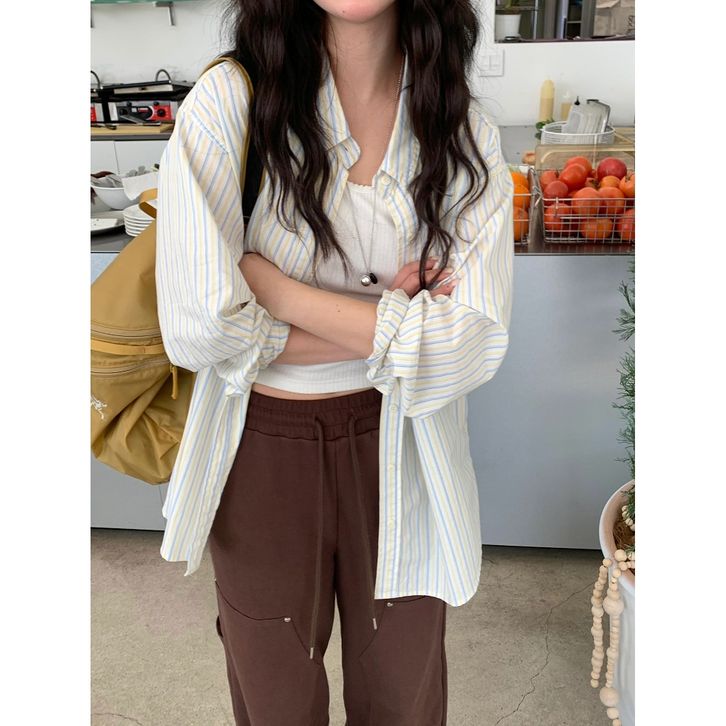 LISA Kemeja Fitted Fitted Shirt Kemeja Kerja wanita Kemeja Lengan Panjang kemeja katun wanita aprikot Stripe kemeja wan