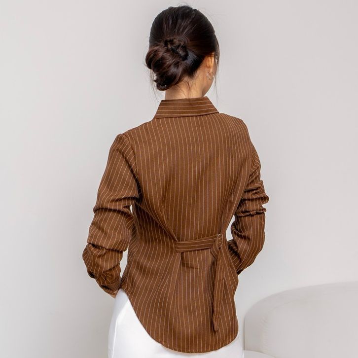 NEW ARRIVAL Ashley Korean Stripes Fitted Shirt Black Atasan Blouse Kemeja Salur Hitam Slim Fit Wanita Kemeja Formal Ker