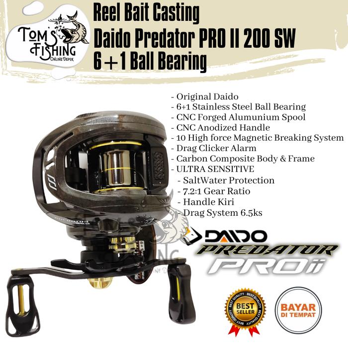 Reel BC BaitCasting Daido New PREDATOR PRO II 200 SW Kiri (6+1 Bearing) 7.2:1 SaltWater Murah - Toms