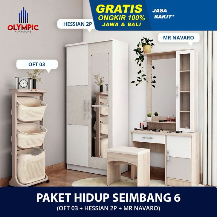 Olympic Paket Hidup Seimbang 6 – Lemari Baju 2 Pintu 1 pcs + Meja Rias 1 pcs + Rak Susun 1 pcs