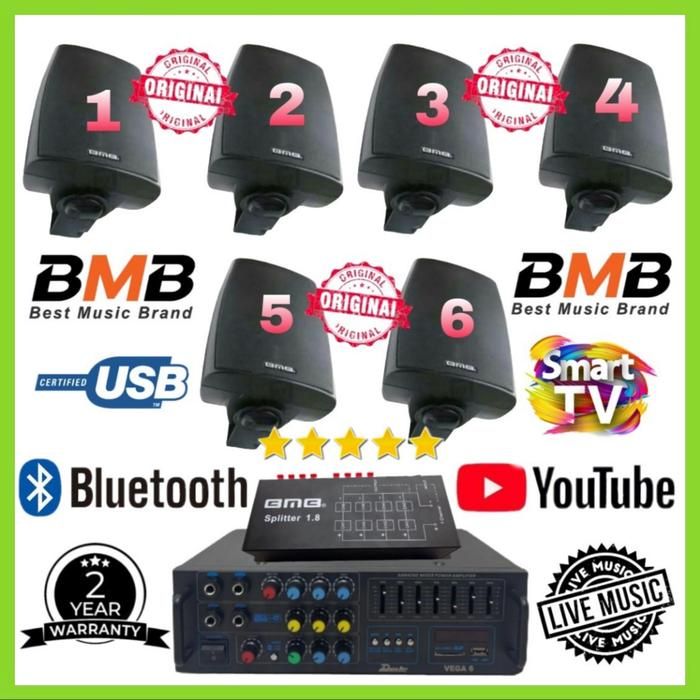 Paket Set Sound 6 Titik Speaker BMB Buat Cafe, Salon, Mesjid, mushola, Sound System Karaoke