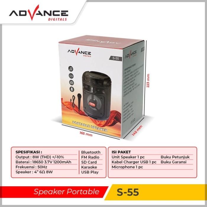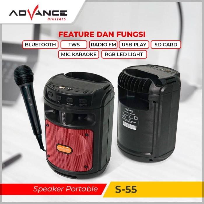 ADVANCE Speaker S-55 Bluetooth Portable Ukuran 4 inch Free 1 Mic Kabel - Hitam Garansi Resmi & 100% Ori - Hitam