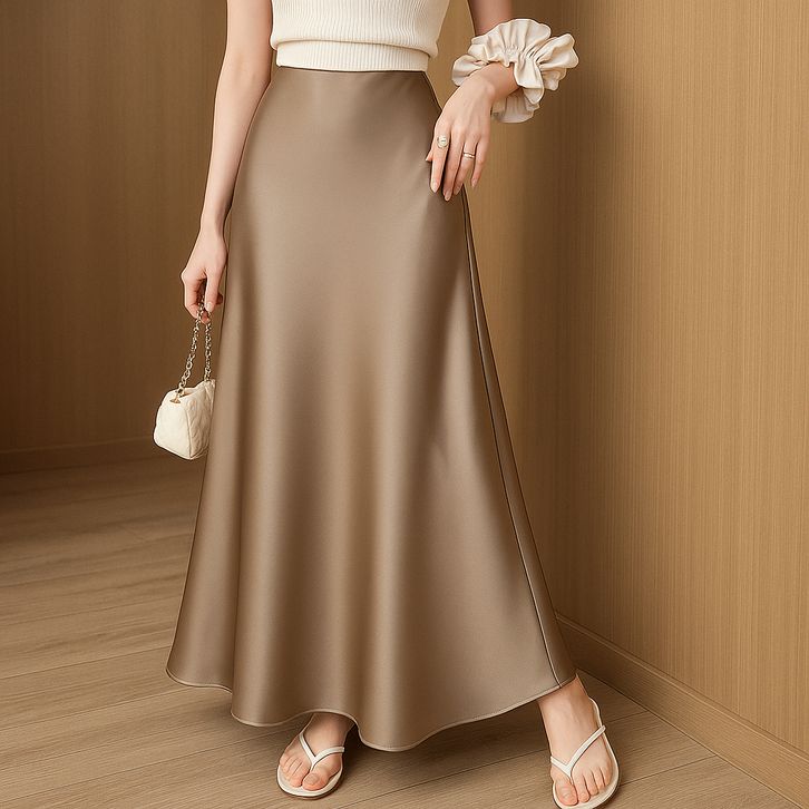 Rok A-Line Satin Silk Premium - Pinggang Karet Nyaman - Bahan Dingin Jatuh - S-XXL | CAROSEL