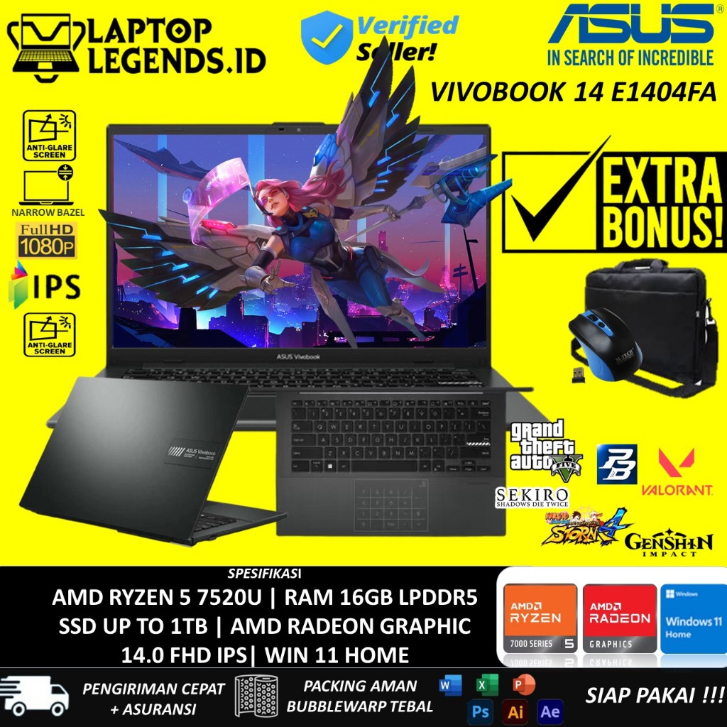 ASUS VIVOBOOK GO 14 E1404FA RYZEN 5 7520 16GB 1TB SSD WINDOWS 11 14.0 FHD GARANSI BLACK