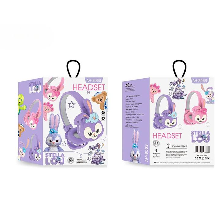 Headset Headphone Bluetooth Anak Karakter Lucu Wireless Mic Earphone Audio Jernih