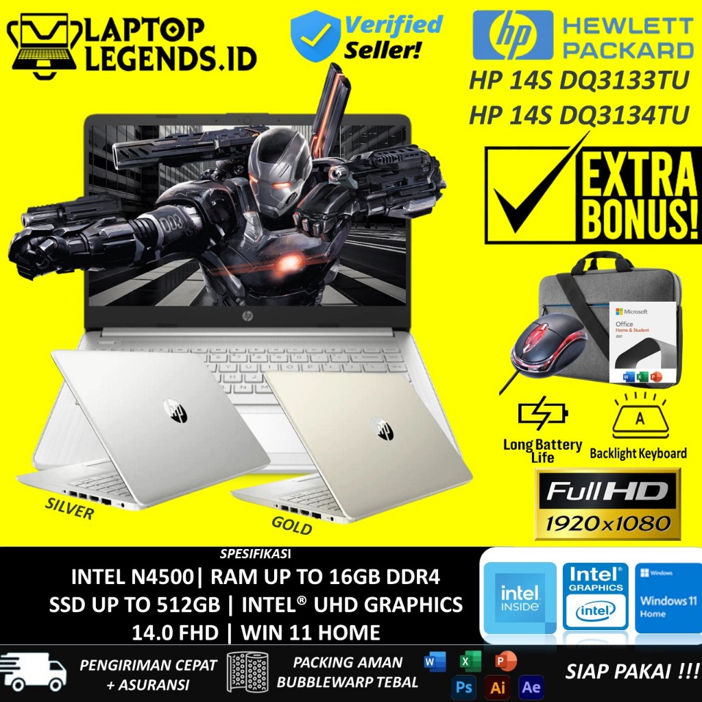 LAPTOP HP INTEL N4500 UHD 8GB 512GB SSD SILVER / golds WINDOWS 11 HOME 14 INCH FHD BACKLITE KEYBOARD - GARANSI 2 TAHUN