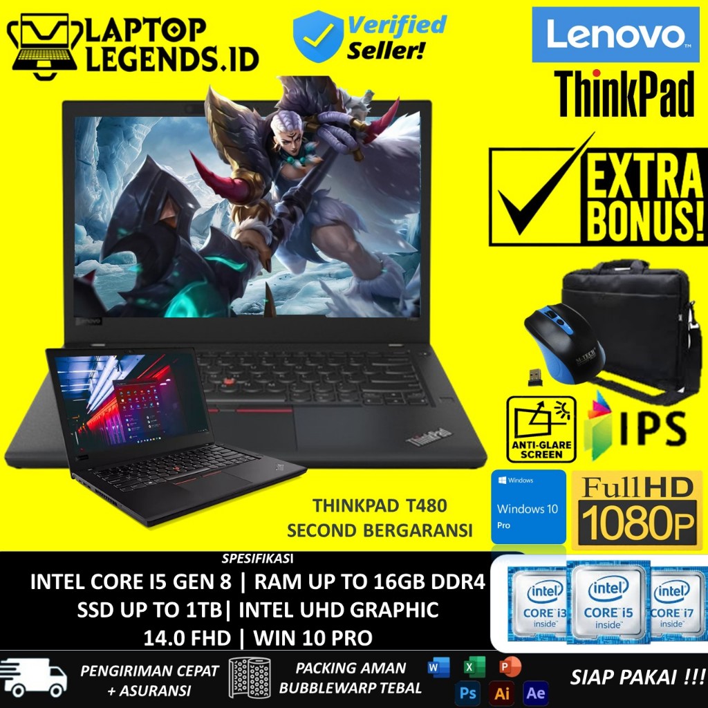LENOVO THINKPAD T480 INTEL CORE I5 8350U RAM 16GB 1TB SSD FHD WINDOWS 11PRO OFFICE BLACK