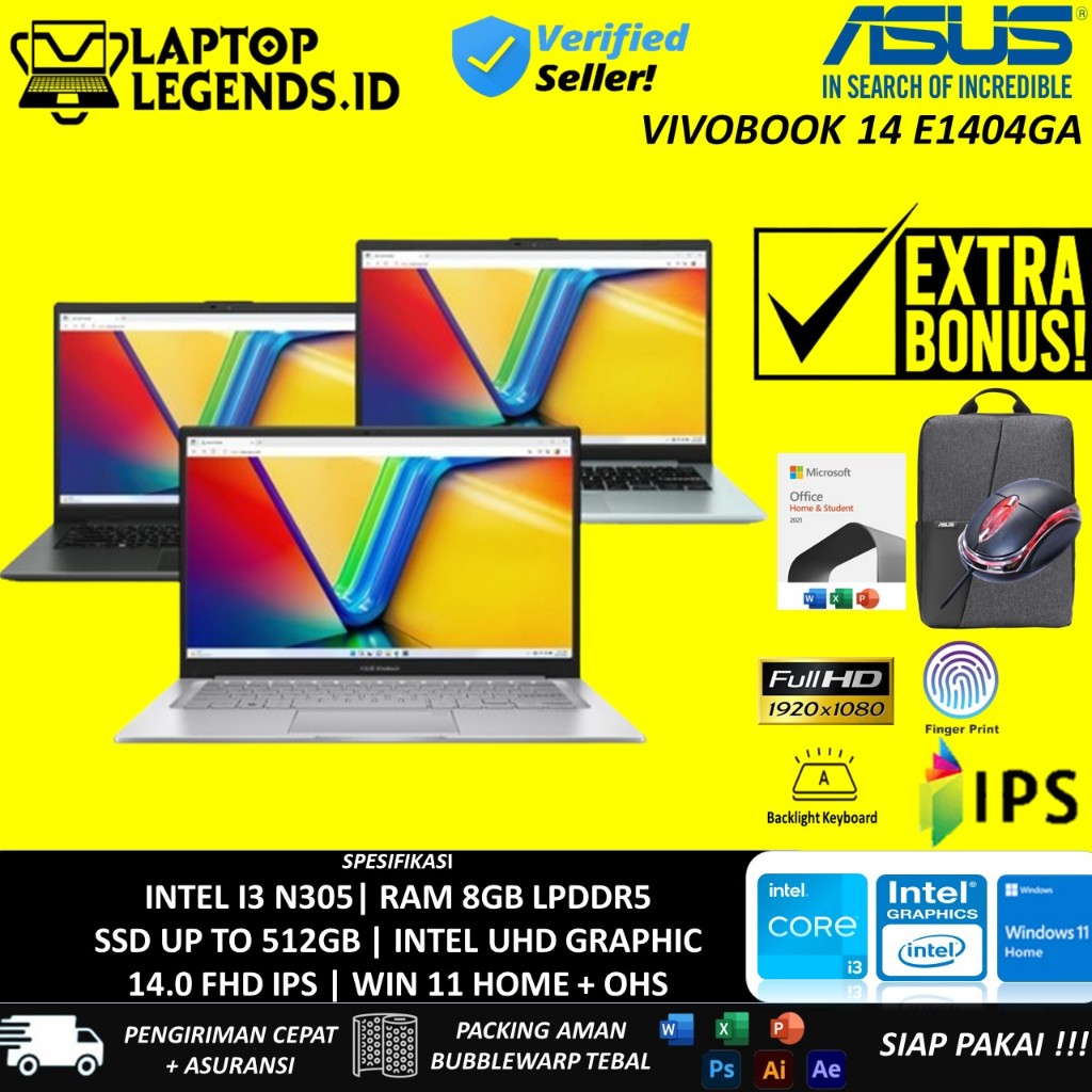 LAPTOP SLIM ASUS VIVOBOOK GO 14 E1404GA INTEL I3 N305 8GB 512GB 14.0 FHD WINDOWS 11 HOME OHS
