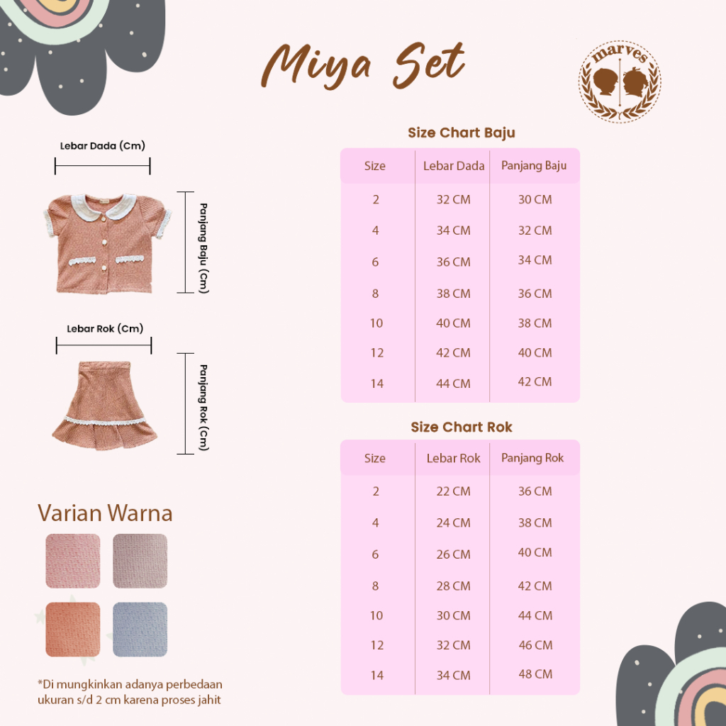 Marves Miya Set Setelan Korea Baju Anak Perempuan Bahan Knit Usia 1 Hingga 14 Tahun