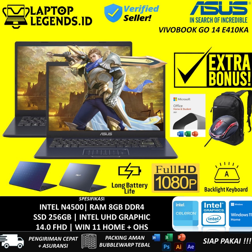LAPTOP ASUS VIVOBOOK GO 14 E410KA FHD INTEL N4500 8GB 512GB 14.0 INCHI FHD WINDOWS 11 HOME OHS