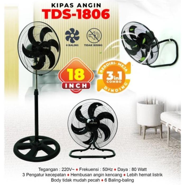 ADVANCE Kipas Angin TDS-1806 / Kipas Angin Besi TDS1806 Ukuran 18 Inch 3 IN 1 6 Baling Garansi Resmi 100% ORI