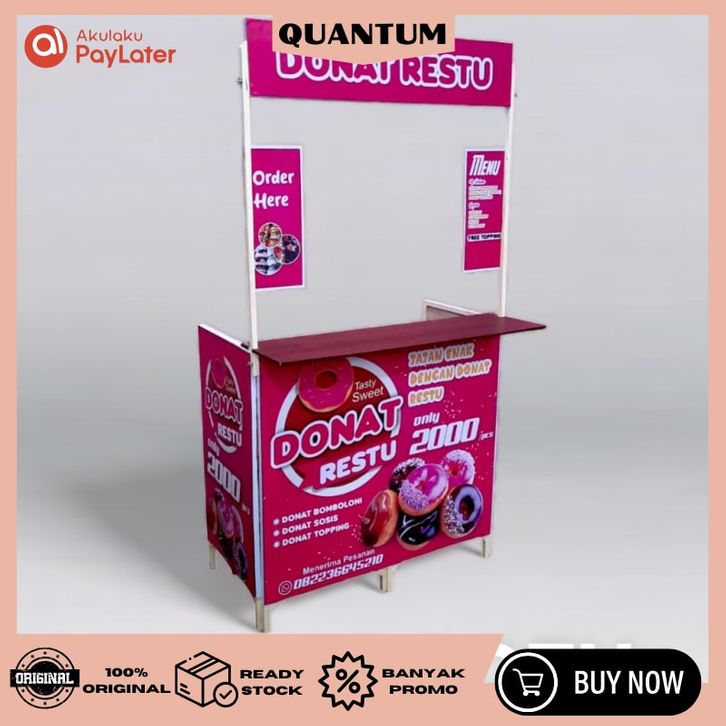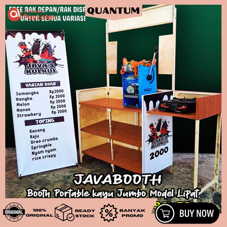Booth Portable Kayu / Gerobak Lipat / Meja Lipat / Standar / Meja Kompor / Bonus Apron