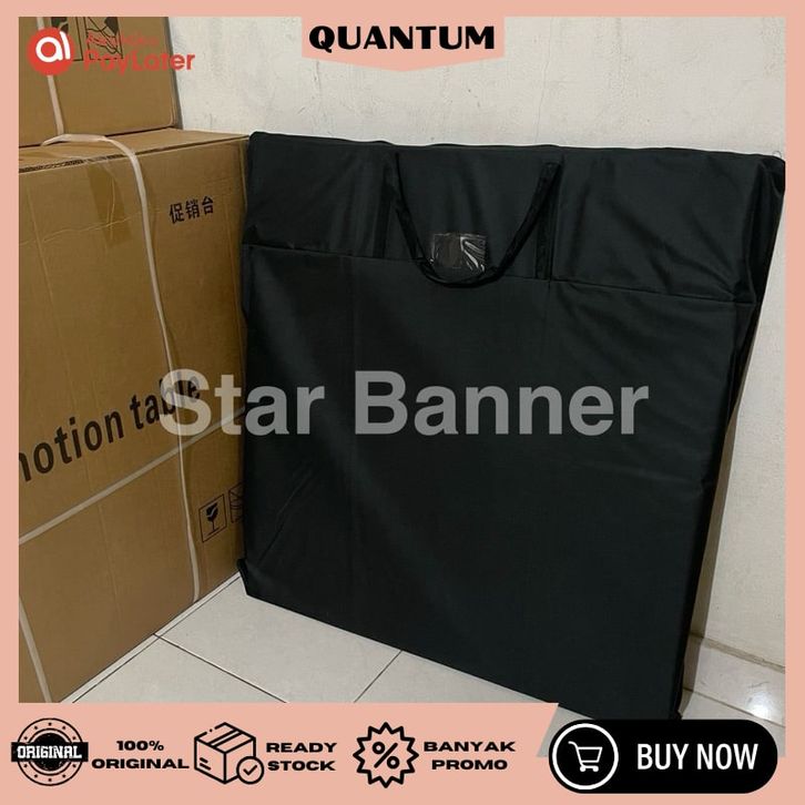 Polycounter segi with header meja promosi meja jualan booth portable