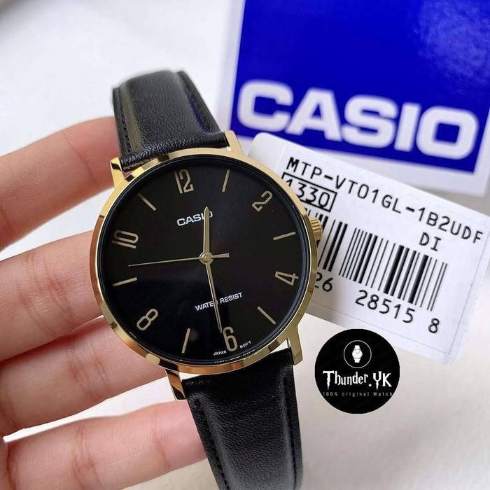 Jam Tangan Pria CASIO MTP-VT01GL-1B2UDF Analog Kulit MTP-VT01GL-1B2