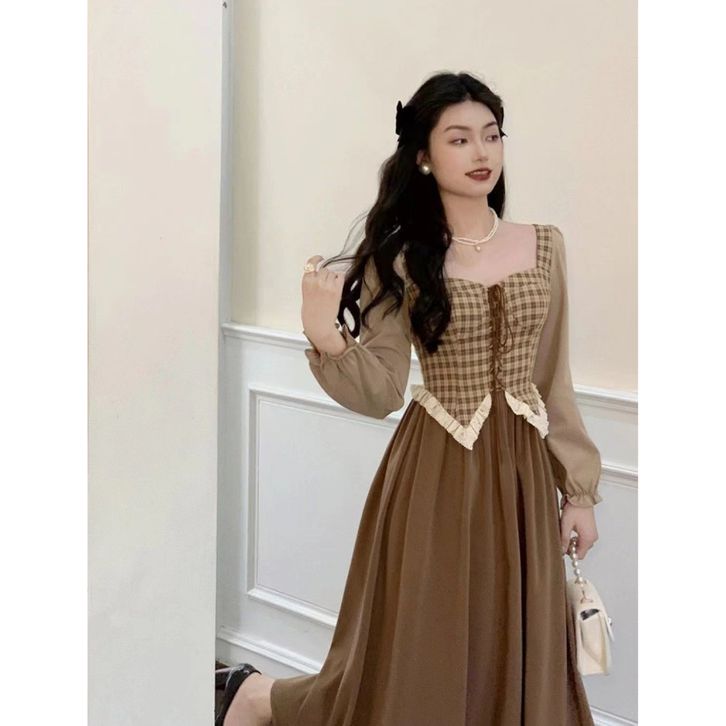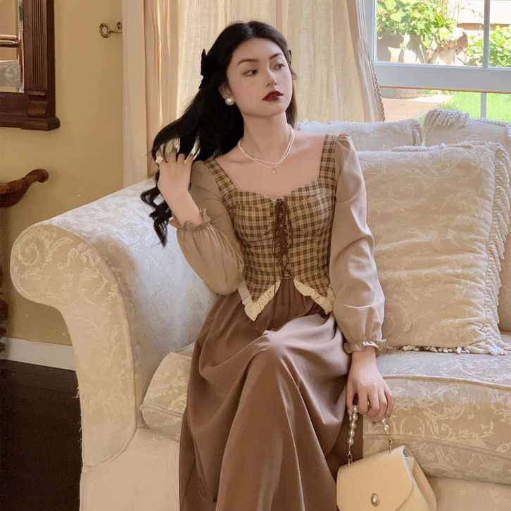 Dres Korea Dress Retro Lengan Panjang Korea Vintage