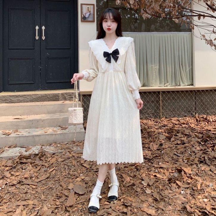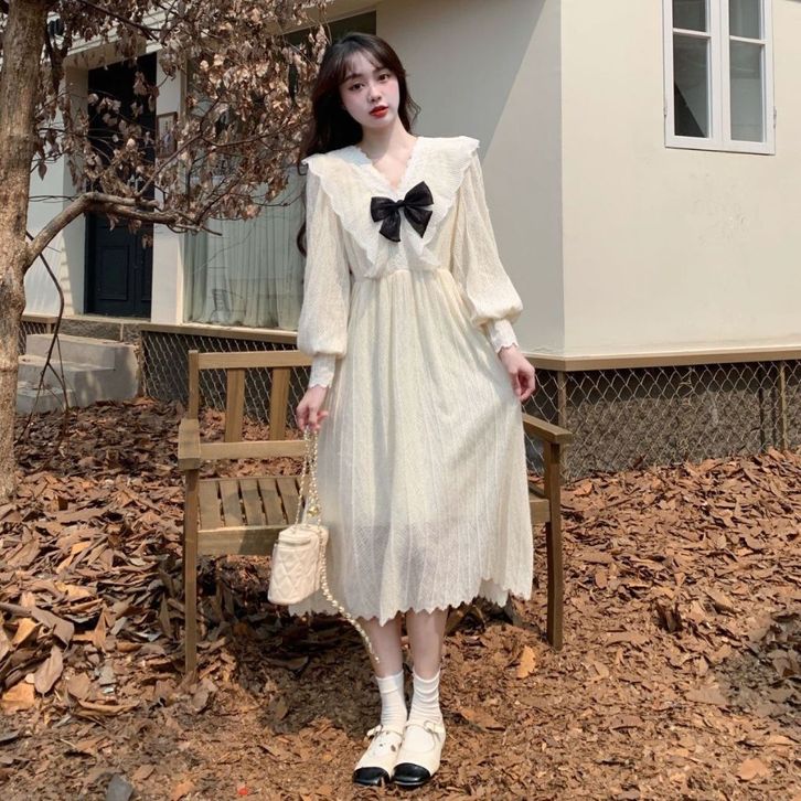Dres Korea 【Bigsize Girl】Hijab Friendly Dress Maxi Renda Kasual Korea Vintage