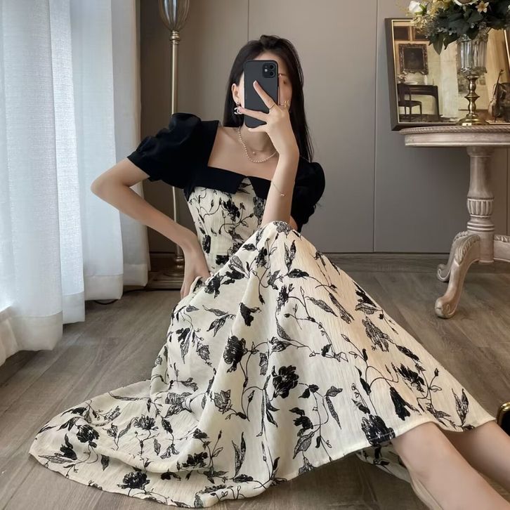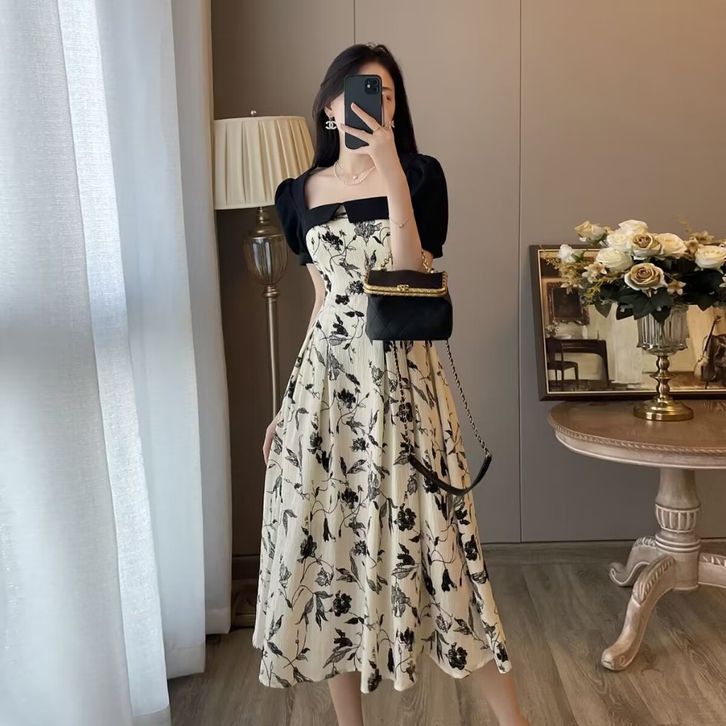 Dres Korea Dress Wanita Korean Style Dengan Motif Bunga Dress Kondangan Dress Imiliek Dress Pesta Dress Party Dress Kor