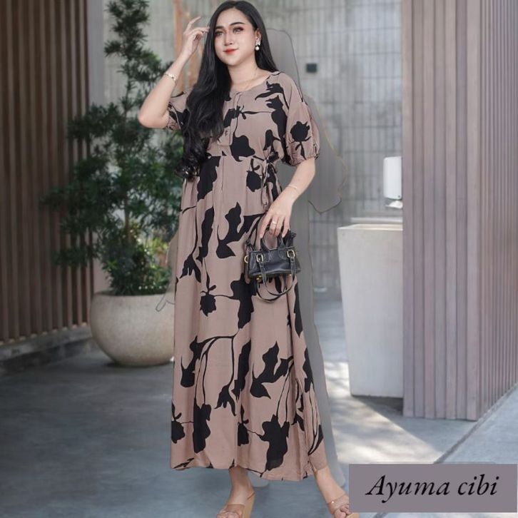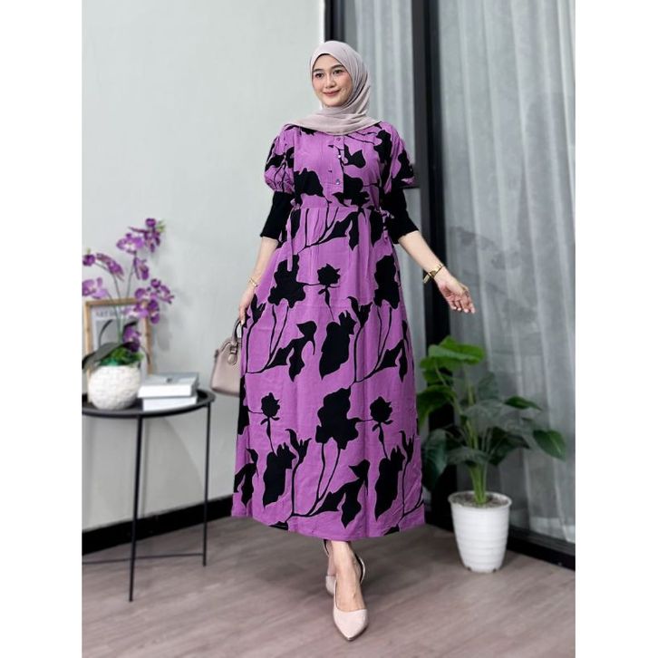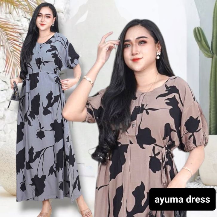 Daster TERBARU DRESS AYUMA DASTER PANJANG RAYON PREMIUM ,JUMBO, BUSUI ,BUMIL,LENGN UJUNG KARET MOTIF DAUN BUNGA,