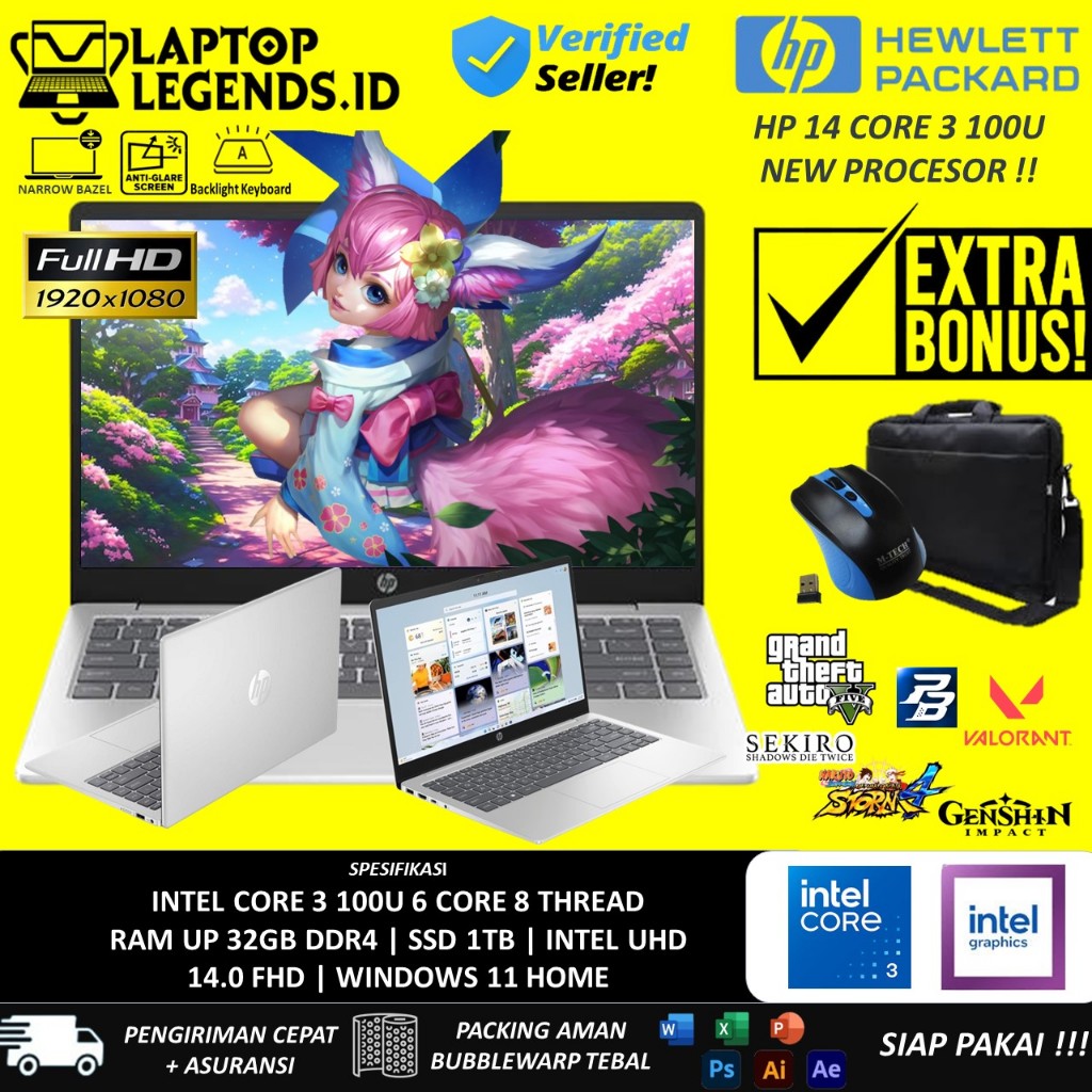 LAPTOP HP 14-EP1063CL INTEL CORE 3 100U 32GB 1TB WINDOWS 11 14.0 INCH FHD TERMURAH