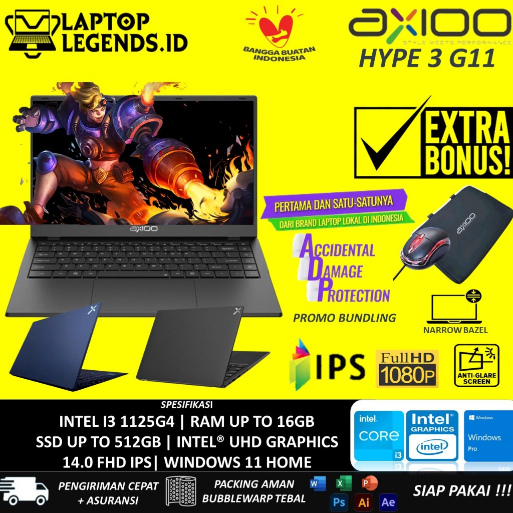 AXIOO MYBOOK HYPE 3 INTEL I3 1125G4 16GB 512GB 14.0 FHD IPS WINDOWS 11 FREE ADP