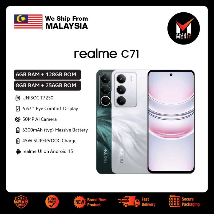 Realme C71 Smartphone | Unisoc T7250 | 6.67" IPS LCD Display | Single Rear Camera 50MP