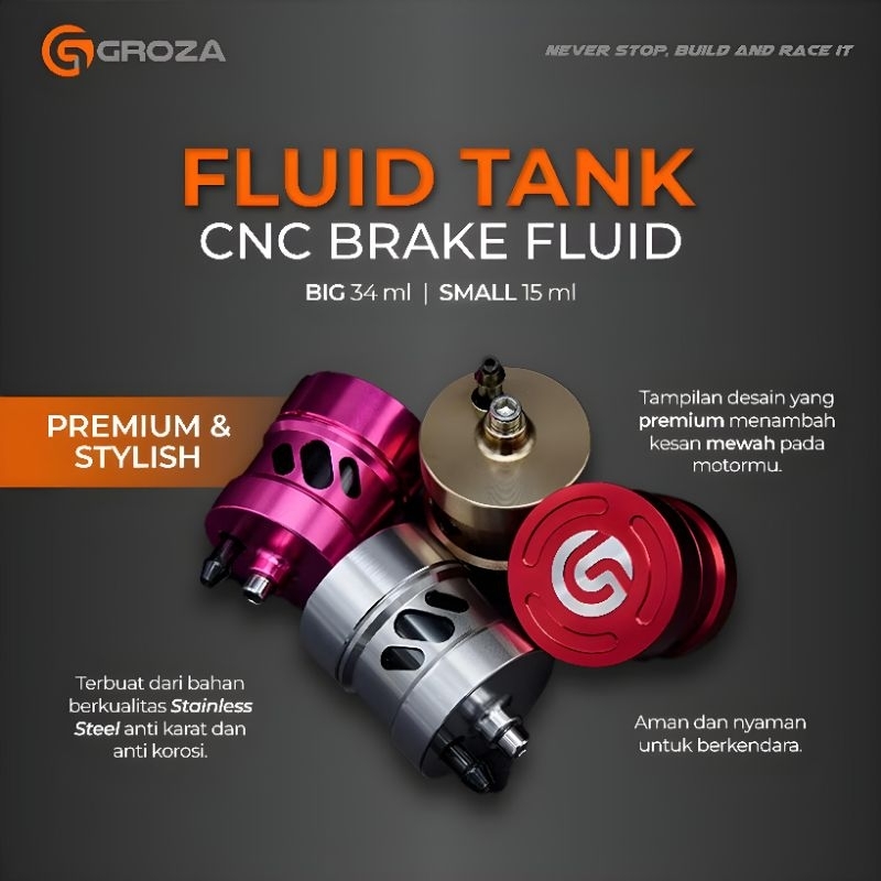 TABUNG MINYAK REM GROZA BRAKE FLUID TANK TABUNG MINYAK MASTER REM BESAR 34ML KECIL 15ML ORIGINAL GROZA TABUNG MINYAK CNC