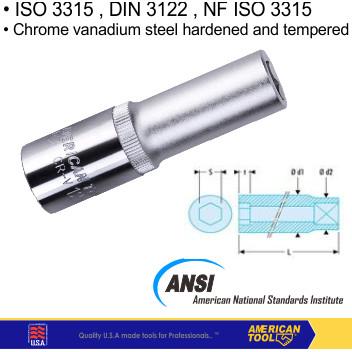 Mata Socket Panjang 1/2"DR 12mm 12PT American Tool 8957388 - 1