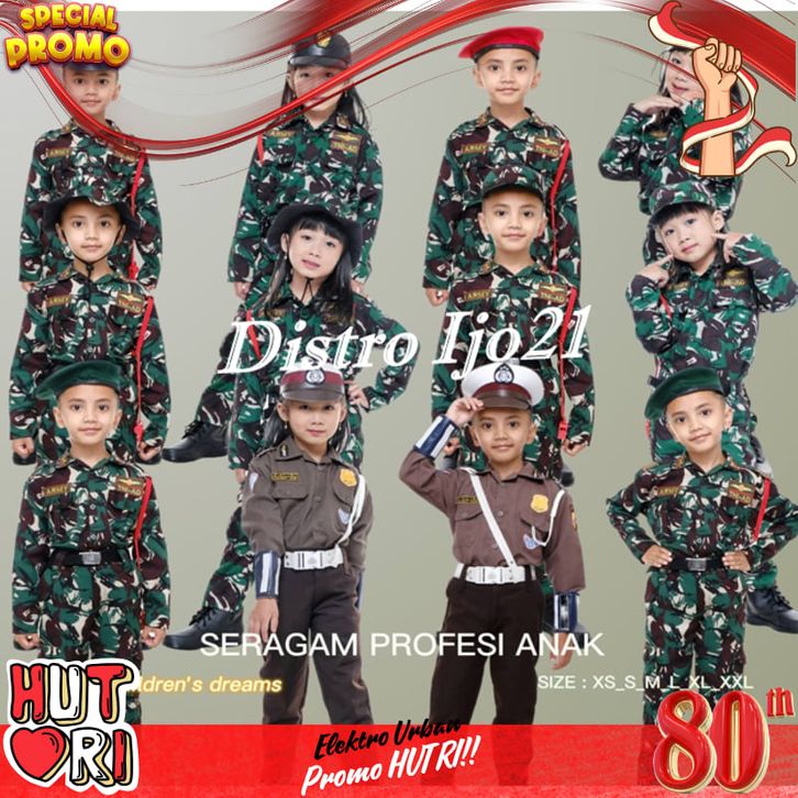 SERAGAM PROFESI ANAK POLISI TNI LORENG CARNAVAL PDL ANAK LORENG PET BARET RIMBA COMANDO PROVESI CARNAVAL ANAK TK