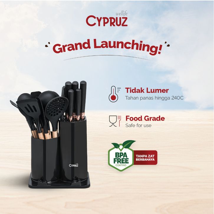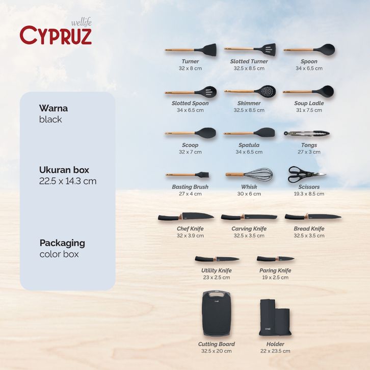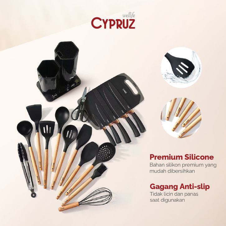 Cypruz Premium Sillicone Utensil & Knives Peralatan Masak Spatula dan Pisau Set 19 Pcs