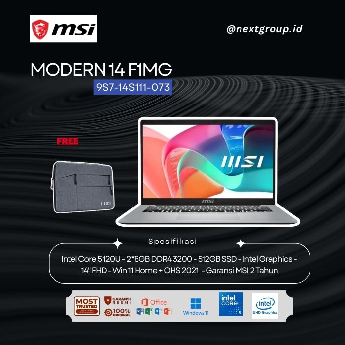 MSI MODERN 14 F1MG (957-145111-073) CORE 5 120U 16GB 512GB Intel UHD 14 FHD W11 OHS