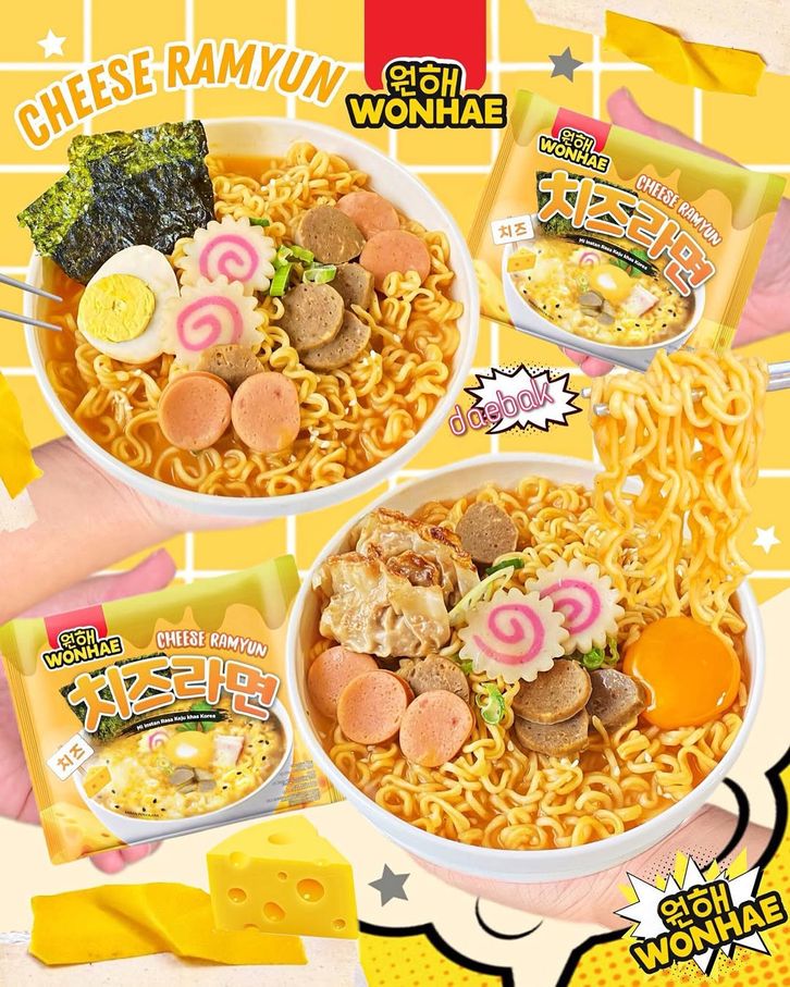 Mie Instant Noodle Korea Won Hae / Wonhae Ramyun 120 Gr Classic Cheese, Fried Rose, Fried Butter Corn, Beef & Seaweed