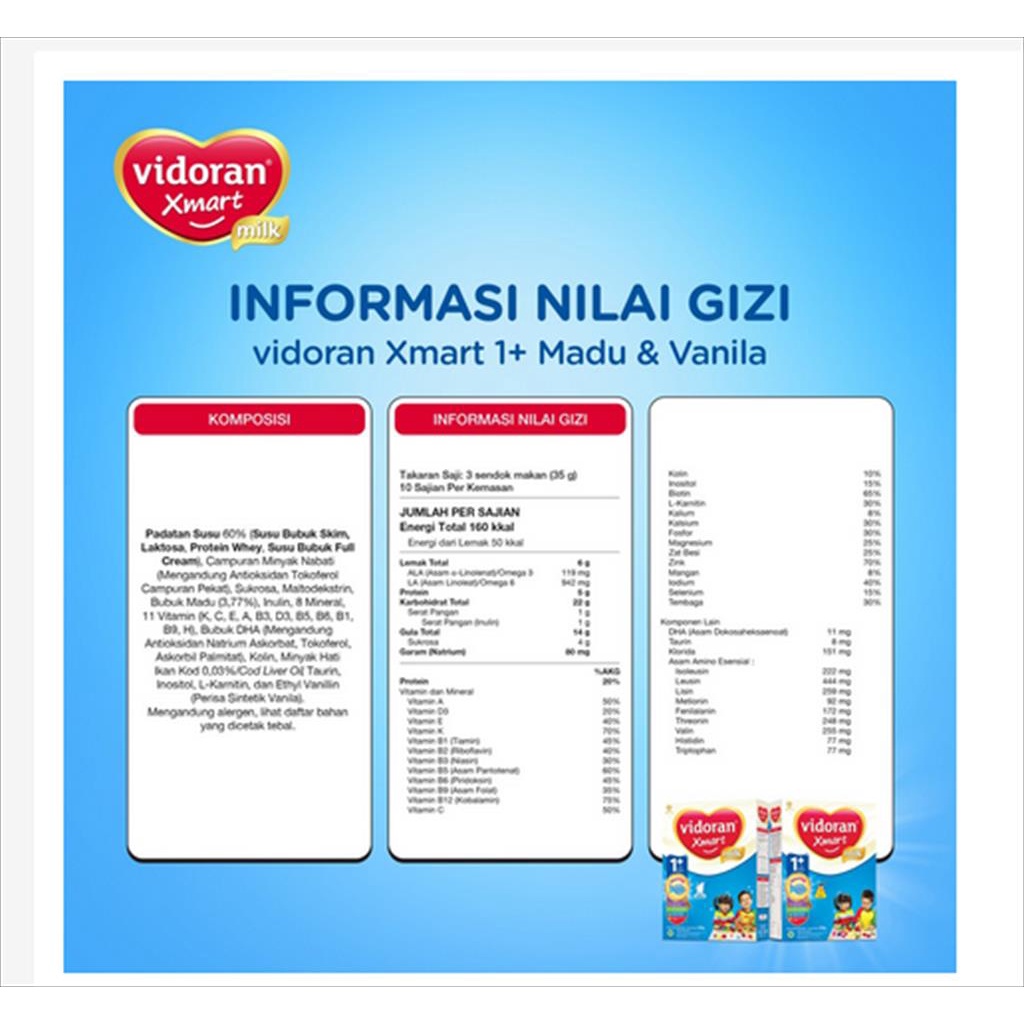 VIDORAN XMART 1+ 3+ 925GR VANILA MADU IMUN UP SUSU FORMULA TAHAP 1 DAN 3 925 GR SSKD