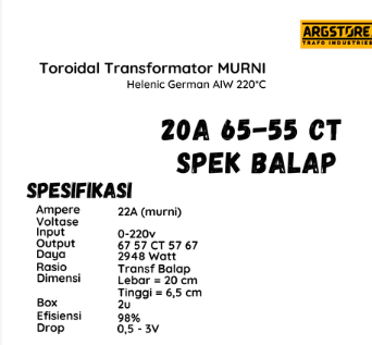 Trafo toroid donat 20A 65V CT (murni) - Spesfikasi balap