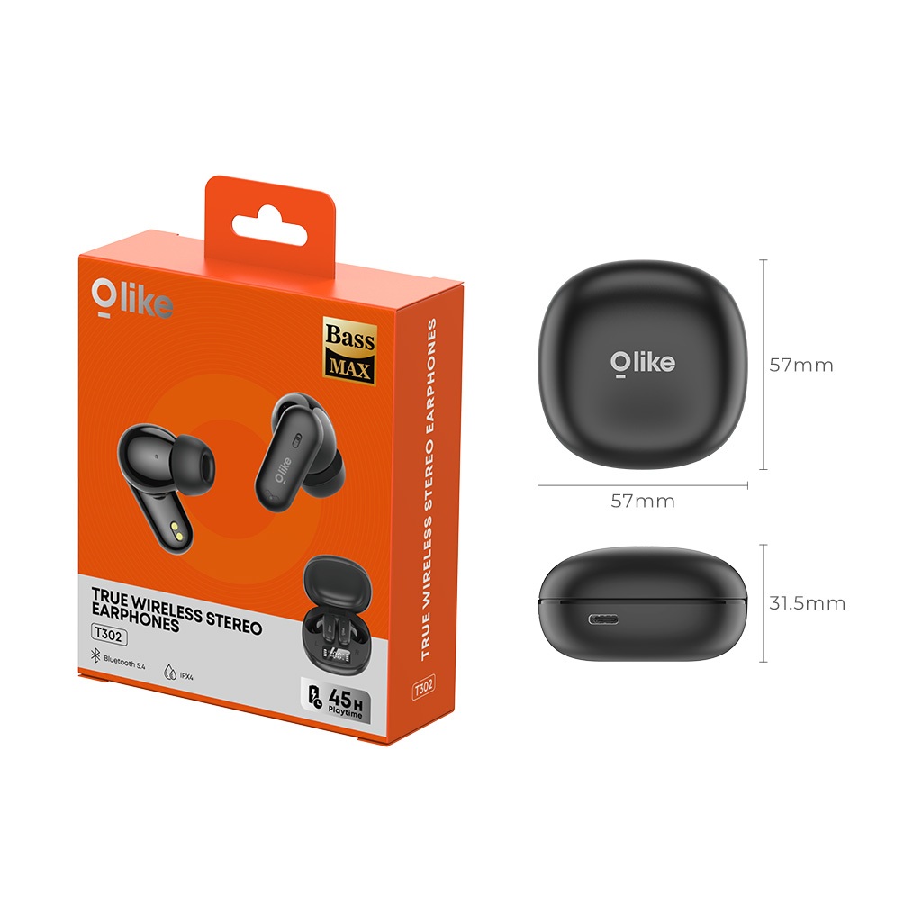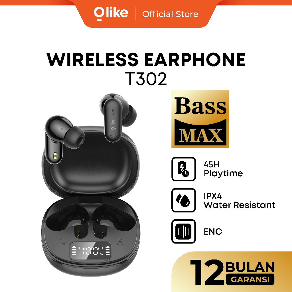 OLIKE TWS T302 + LED BATTERY DISPLAY 45 JAM PLAYING TIME EARPHONE BLUETOOTH 5.4/HEADSET BASS MAX ORIGINAL OFFICIAL STORE