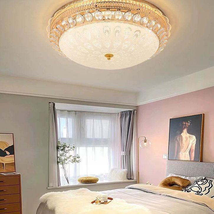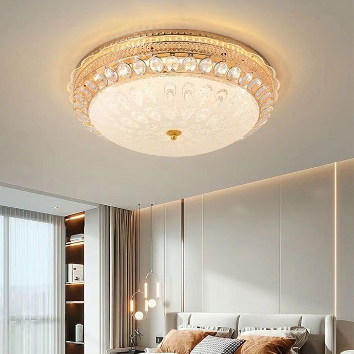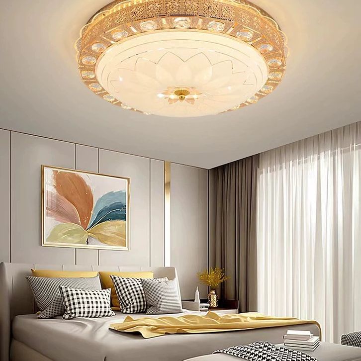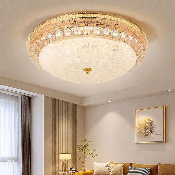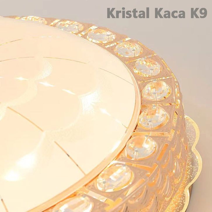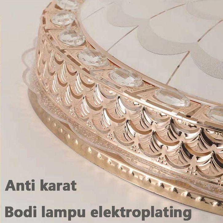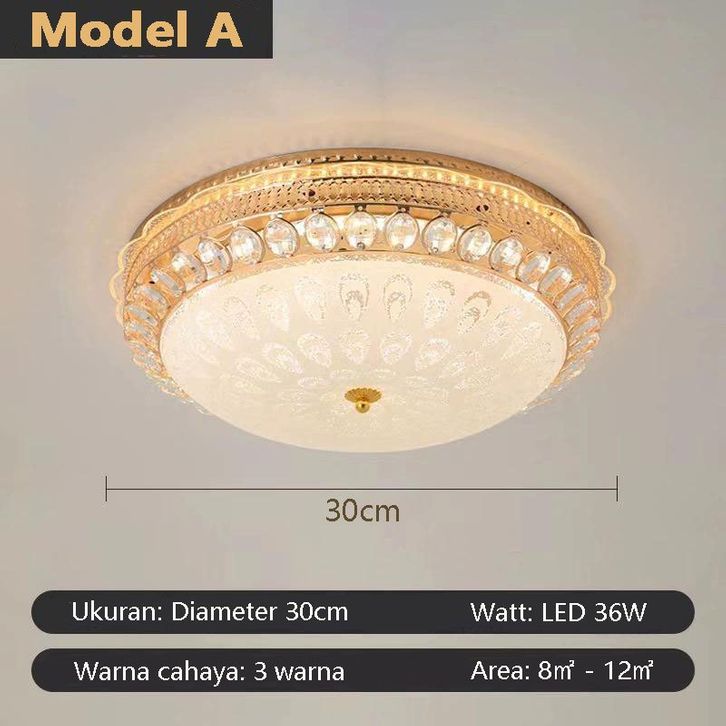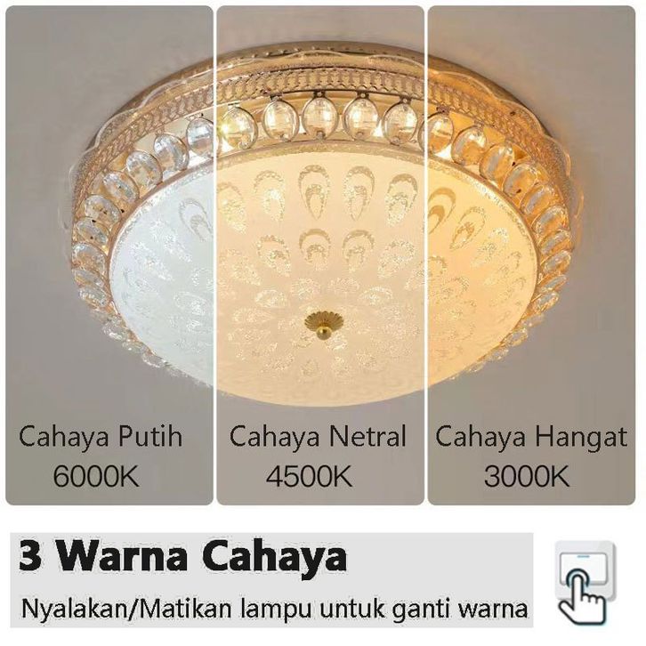 (TERMURAH)Lampu Plafon LED 3 Warna Mewah Lampu Kamar Aesthetic Lampu Dekoratif - Emas/Kristal/Φ30cm/36W