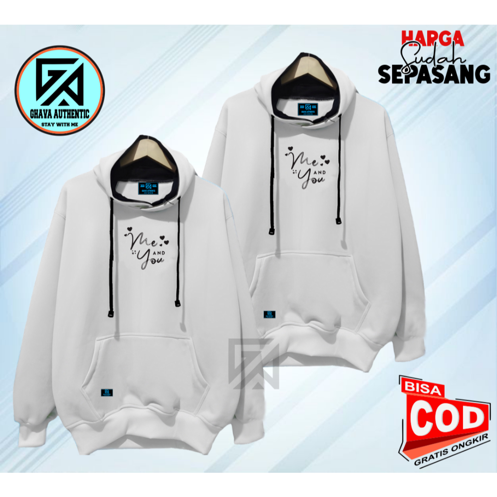 Sweater Hoodie Pria Wanita Couple Pasangan Distro Motif Me And You Warna Putih Bahan Katun Fleece
